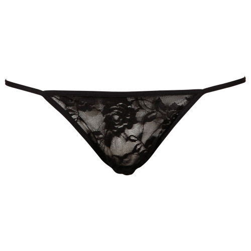 Neglisjén er deskorert med sorte blomsterblonder og et pent pyntebånd under brystene. Matchende string følger med.