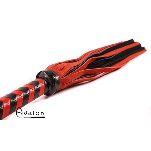Avalon - HEIR - Svart og Rød Flogger med 36 Haler i Semsket Lær