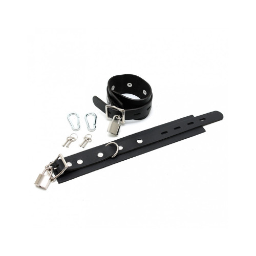 Enkle fotcuffs som enkelt justeres og festes med en karabinkrok. Låsen blir også festene til cuffsen..