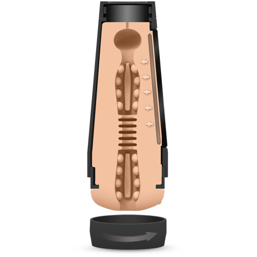 Denne masturbatoren har et delvis åpent punkt på siden hvor du kan klemme inn for å få en trangere følelse.