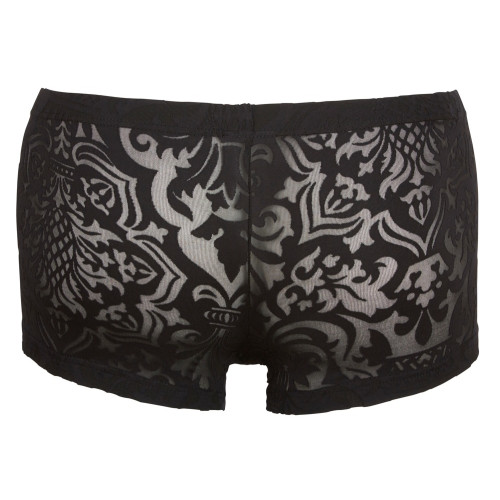 Pirrende, lett gjennomsiktig bokser med brokademønster. Elastisk og myk mot huden.
