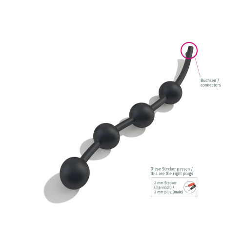 Ikke bare ser den lekker ut, den gir skikkelig god elektrostimuli bak. Den kan brukes som vanlige analkuler, men i kombinasjon med en strømboks fra Mystim vil gi deg en deilig og kriblende opplevelse, med strøm gjennom alle kulene så du kan oppleve orgasme som aldri før!