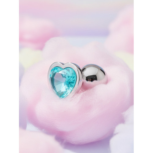 Buttplug med lys blå hjertekrystall.