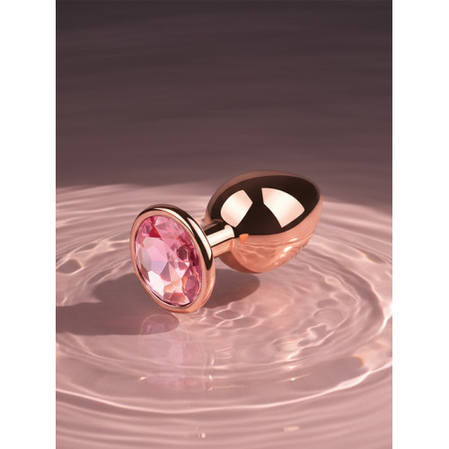 BQS - Buttplugg i rosegull metall med rosa krystall - Small