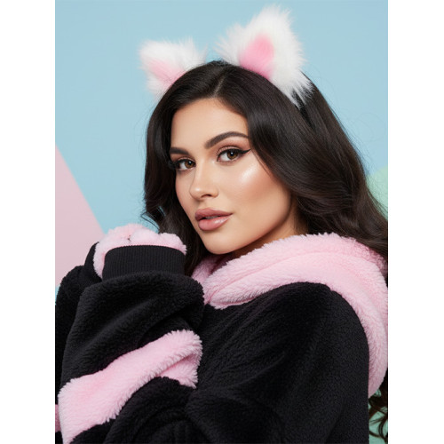 BQS - Ører med hårbøyle Hvit og Rosa