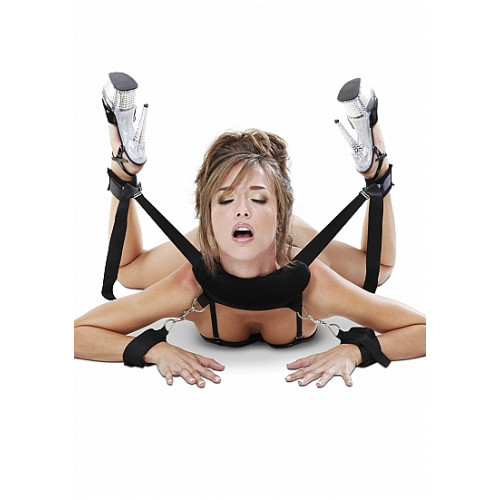 Inkluderer: Hals/nakke Sele, 2 leggcuffs, 2 håndcuffs og øyemaske.
