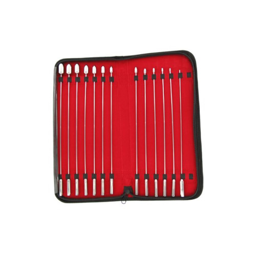 Dilatorsett med hele 13 forskjellige størrelser, til utvidelse av urinrøret.