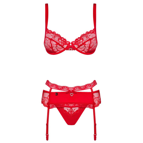 Obsessive - Heartina - Rødt Undertøysett med Blonder