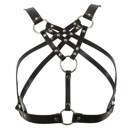 Etikett: harness, bodyharness, kroppsharness, kropp, body, midje, midjebelte, pynt, kroppssmykke, lær, leather, oring, o-ring, bryst, brystharness, overkropp, overdel