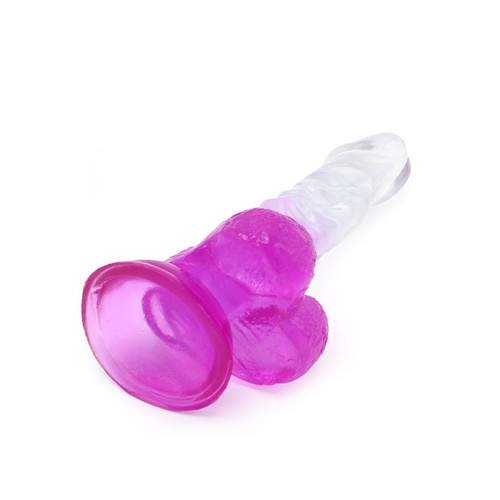 Klassisk dildo med leken vri! Nyt en realistisk form med markert hode og spennende detaljer som sørger for en fyldig opplevelse. Sammen med det transparente materialet som gradvis går over i en frekk lilla farge er dette en dildo som både ser bra ut og føles enda bedre i bruk!