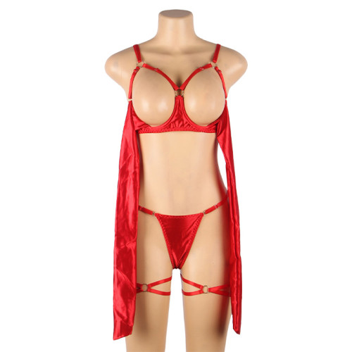 Satinstroppene kan knytes i sløyfe over brystene og åpnes for lett tilgang.