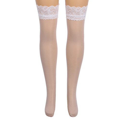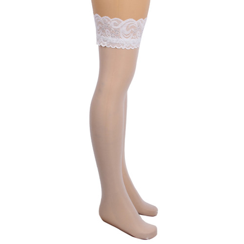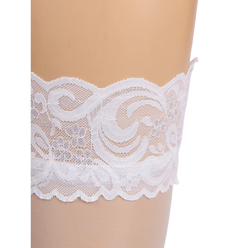 Den lekre blondekanten øverst gir et feminint og forførende uttrykk. På innsiden har strømpene dobbel silikon stripe for å sørge for at strømpene holder seg på plass uten å skli.