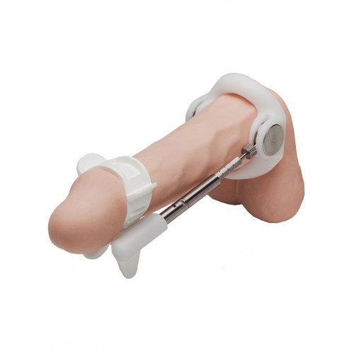 Den spesiallagde plastikkringen plassered rundt penisroten og klemmen festes rundt penishodet. Mellom disse to ringene sitter det to dynamiske metallstenger som skaper en strekkraft.