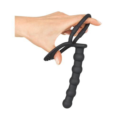 Er du klar for å ta nytelsen til neste nivå? Denne penis- og pungringen gir deg mulighet for dobbel penetrasjon - både vaginal og analt! Med en penisring, pung-ring og analkuler gir denne deg både sterkere ereksjon og gir ekstra stimulering for en mer intens følelse.