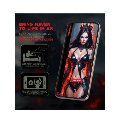 Når du skanner QR kodene som følger med i esken, åpnes portalen til Raven sitt domene. Gjennom augmented reality kan hun tre frem i rommet ditt, mørk og nær, med blikket rettet mot deg. Eller du kan velge en sensuell film som trekker deg inn i Noxmere, et rike av vridde trær, svarte slott og lek som aldri er uskyldig. AR og video gjør Raven til mer enn en idé, hun blir en stemning du kan gå inn i når du vil.