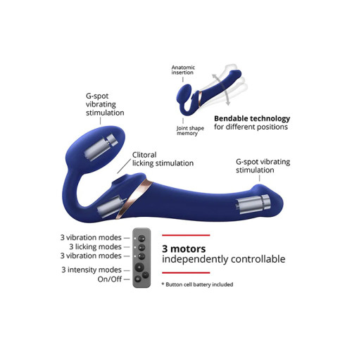 Strap-on-Me - Stroppeløs Strap On med Vibrasjoner og Slikkefunksjon - XL - Blå