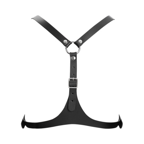 Harnessen kan brukes direkte mot huden for et dristig og fetisjpreget uttrykk, eller over klær for en mer subtil og estetisk look. Den fremhever brystet på en flatterende måte og passer like godt til bondagelek som til klubb, fotoshoot eller rollespill.