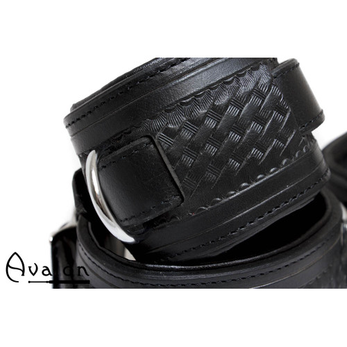 Etikett: Avalon, Lær, collar, halsbånd, cuffs, mansjetter, håndjern, ankel, hånd, fot