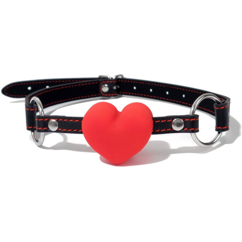 Gag med rødt hjerte i silikon og reimer i imitert skinn.