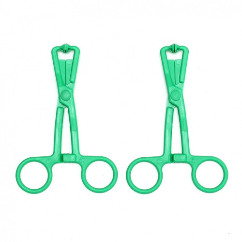 Brystklyper i metall med skarpe klyper, som kommer ut når du trykker inn stemplene. Kjetting ..