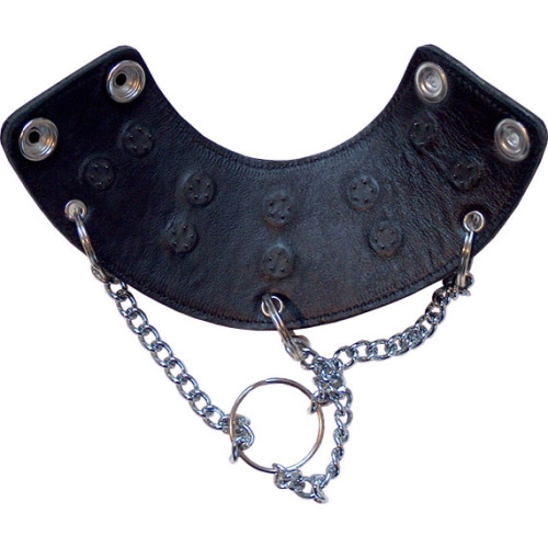 Kragen er 2,5 cm bred og dekorert med nagler. Justeres med spenne. Størrelse: SM = 32-38 cm M..