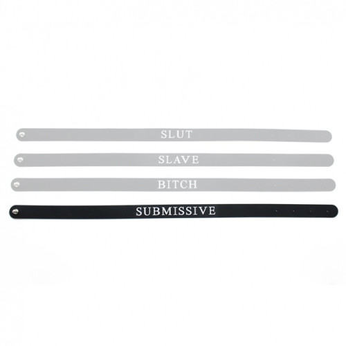 Finnes med ulike tekster: SLUT, BITCH, SLAVE og SUBMISSIVE