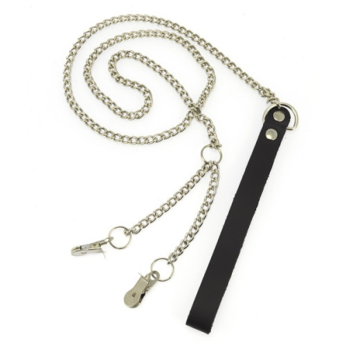 Kjønnsleppe/brystklyper med kjetting og bånd.