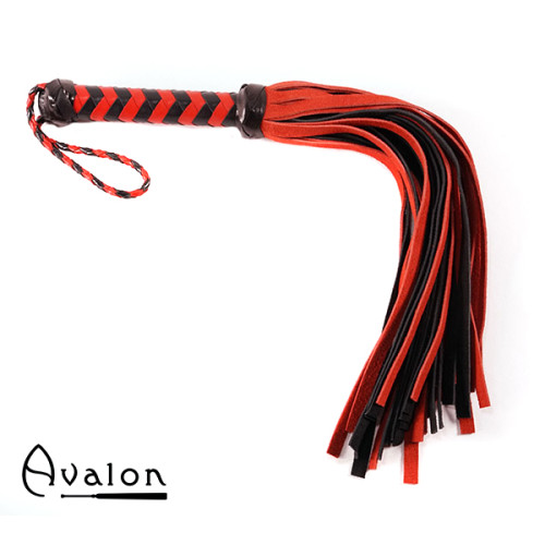 Avalon - HEIR - Svart og Rød Flogger med 36 Haler i Semsket Lær