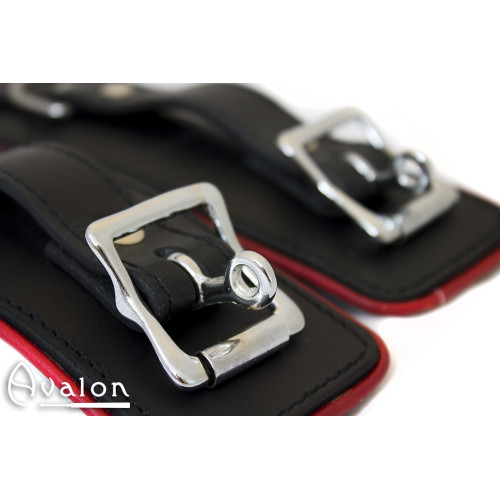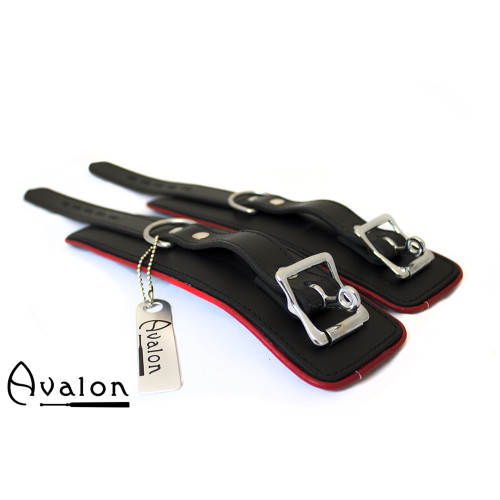Etikett: avalon, cuffs, fot, hånjern, bondage, lær, leather, lås, bdsm alchemy, polstrede, håndcuffs, sort, rødt, valentines