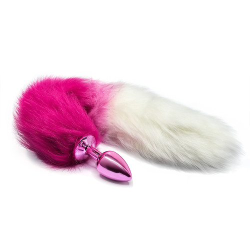 BQS - Buttplug med rosa plugg og gradert rosa og hvit hale - Small