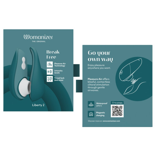 Den forbedrede Womanizer Liberty 2 gir deg friheten til å utforske dine indre ønsker på en unik måte. Utstyrt med den revolusjonerende Pleasure Air Technology, skaper den en berøringsfri sugende følelse som stimulerer klitoris på en uforglemmelig måte. Den presise og justerbare intensitetskontrollen gir deg full kontroll over din egen opplevelse, slik at du kan tilpasse den etter dine preferanser og humør. Velg mellom hele 8 forskjellige rene intensiteter.