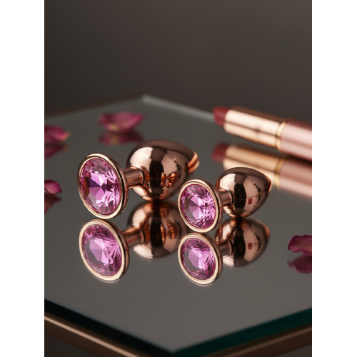 BQS - Rosegull Buttplugg med rosa krystall - Medium